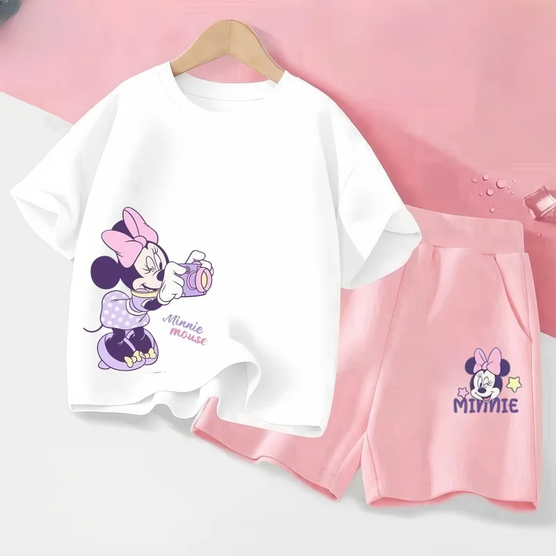 Summer Baby Girl Boy Clothes Set Children Disney Minnie Printing T-shirt and Short Two Pieces Suit Kid Shorts Sleeve Tracksuit